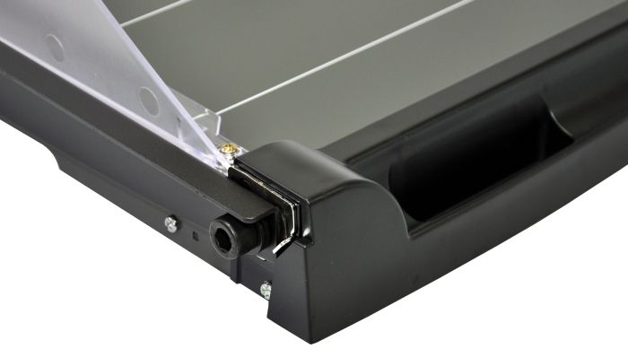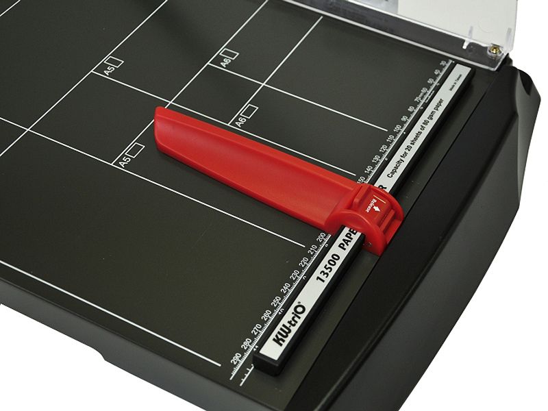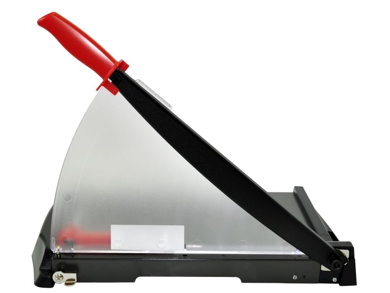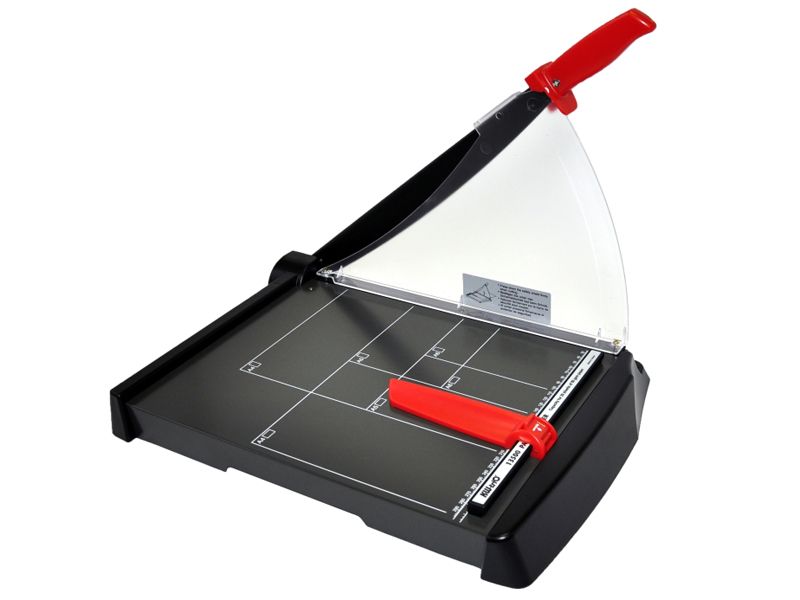 Výkonná páková řezačka A4 s kovovým stolem a plastovým ochranným krytem.Na stole je lišta s měřítkem a zadním dorazem na něm jsou vyznačeny běžné DIN formáty.Délka řezu je 343 mm.Maximální kapacita 20 listů (70g/m).Vhodná pro kanceláře a na úpravu fotek.Dotaz na produkt