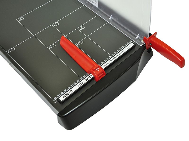 Výkonná páková řezačka s kovovým stolem a plastovým ochranným krytem. Na stole je lišta s měřítkem, zadním dorazem a jsou na něm vyznačeny běžné DIN formáty A3 - A6. Maximální kapacita 20 listů (70g/m2). Vhodná pro kanceláře i na úpravu fotek. - Délka řezu: 449 mm- Maximální kapacita 20 listů (70g/m)- Vhodná pro kanceláře a na úpravu fotek.Dotaz na produkt