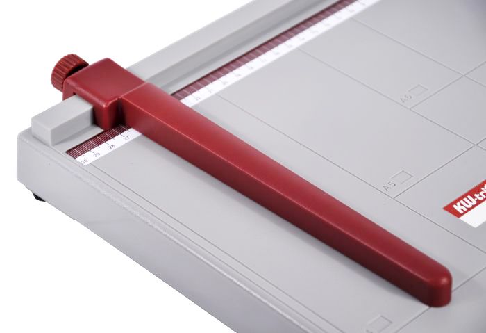 Hobby páková řezačka A4 s plastovým ochranným krytem a plastovou základnou s oděruvzdorným povrchem ABS, s vyznačenými měřítky a DIN formáty a posuvným dorazem papíru se šroubovou aretací.Dotaz na produkt