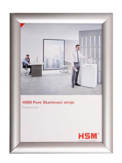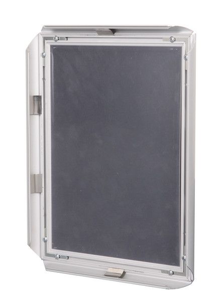 Reklamní kliprám A4 na plakáty z eloxovaného hliníkus ostrými rohy.Balení obsahuje montážní sadu.Zadní panel - HIPS 1,1 mmSpecifikace: