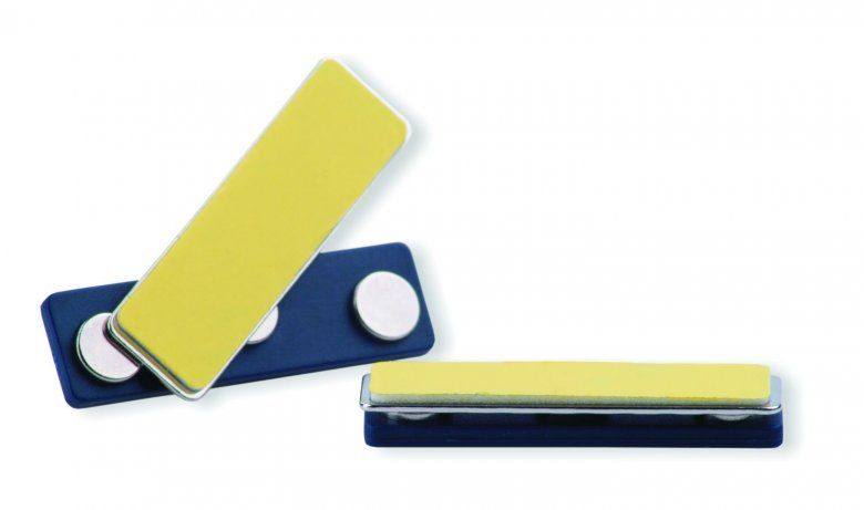 Dvoudílný, m agnetický kovový klips se samolepící zadní stranou, rozměry: 45 x 12 mm. Slouží pro uchycení jmenovky na oděv. Na zadní stranu jmenovky se přilepí samolepící část. Volná část klipsu se přiloží je jmenovce ze zadní strany přes oděv. Magnet je dostatečně silný k tomu, aby jmenovku přes oděv udržel a žádným způsobem ho neponičil.Specifikace: