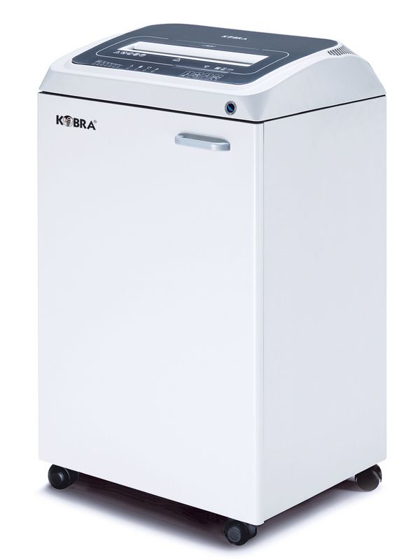 Profesionální skartovačka s dotykovou obrazovkou s vysokým zabezpečením vhodná ke skartaci dokumentů se stupněm utajení „Tajné“ a „Přísně tajné“. Všechny ovládací prvky se aktivují pouhým dotykem panelu. Tepelná ochrana motoru umožní 24 hodinový nepřetržitý provoz bez přehřátí. Řezné nože jsou z uhlíkové kalené oceli. Kobra 270 TS HS-6 dokáže skartovat list papíru na přibližně 16 000 mikročástic o rozměrech 0,8 x 5 mm (P-7), které jsou absolutně nečitelné i při použití speciálních elektronických zařízení. Velikost řezu 0,8 x 5 mm mm překračuje specifikaci NSA/CSS 02-01 a požadavky Národní bezpečnostní agentury. Dokáže skartovat i průhlednou folii. Odolný řetězový pohon s ocelovými převody nabízejí spolehlivost a odolnost proti opotřebení.Stroj je vybaven EPC (Electronic Power Control) pro optimalizaci skartování bez zaseknutí, systémem Energy Smart a automatickým odpojením od elektrické sítě pro maximální úsporu energie, automatickým Start&Stopem, bezpečnostním zastavením při otevření dvířek a/nebo plném pytli s odpadem a automatickým zpětným chodem v případě zaseknutí. Skříň o objemu 110 litrů je umístěná na kolečkách.Možnost volitelného vybavení: oddělená řezací jednotka pro CD/DVD/kreditní karty (oddělení skartovaných materiálů ve dvou koších), automatický olejovač a systém detekce kovů.Specifikace: