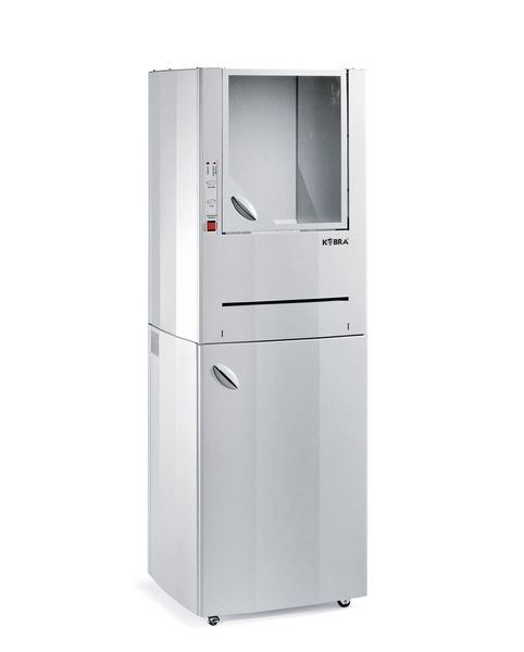 Centralizovaný skartovač s příčným řezem určený ke skartování dokumentů a také papíru pocházejícího z odpadkových košů celé kanceláře. Stačí vložit papír do vyhrazeného hrdla nebo vyprázdnit odpadkový koš do velké násypky a působivé řezací nože s automatickým podávacím systémem a mechanickými otočnými klapkami seskartují vše na miniaturní kousky. Tím je dosaženo velké bezpečnosti a redukci objemu drceného materiálu. Skartovač disponuje výkonným 2100 W motorem a 200 litrovou vysoce kvalitní ocelovou odpadní nádobou.Specifikace: