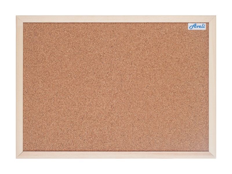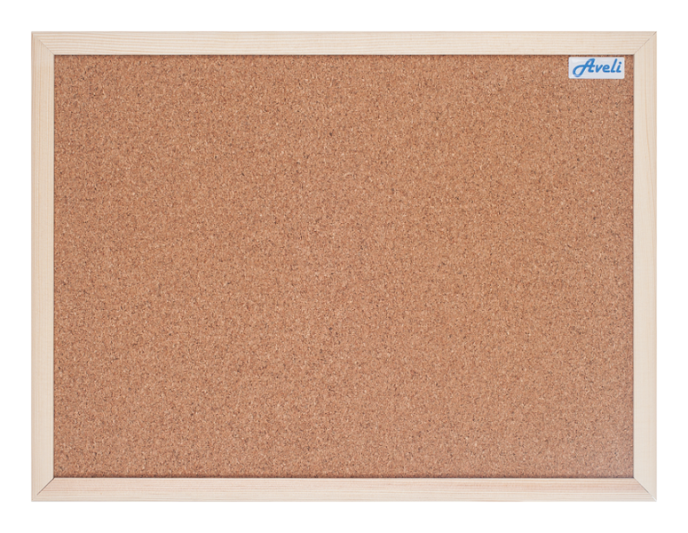 Korková nástěnka AVELI má vysoce odolný povrch proti poškození při práci s napínáčky a špendlíky. Má lehkou konstrukci s dřevěným rámem.