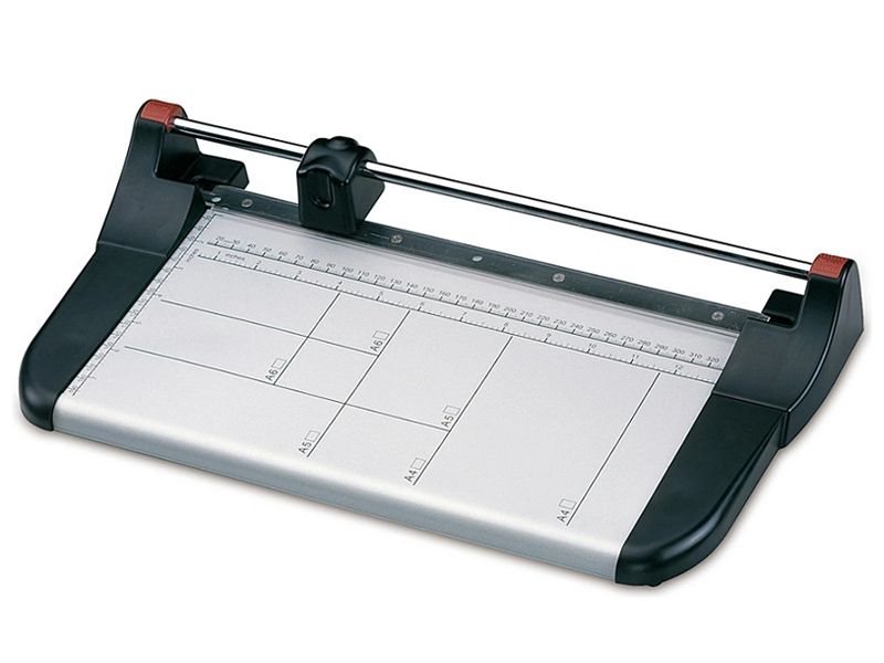 Kvalitní kotoučová řezačka s pevným kovovým stolem, určena pro řezání dokumentů formátu A4. Pracovní stůl je vybaven natištěnými měřítky a přítlačnou lištou z průhledného plastu. Řezačka umožňuje řezání max. 10 listů papíru najednou. Maximální tloušťka řezu je 1,0 mm. Rotační nůž je vyroben z nerezové tvrzené oceli. Řezačka je vhodná pro použití v kanceláři a v domácnosti.Dotaz na produkt