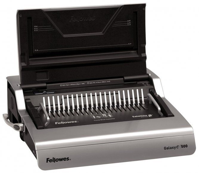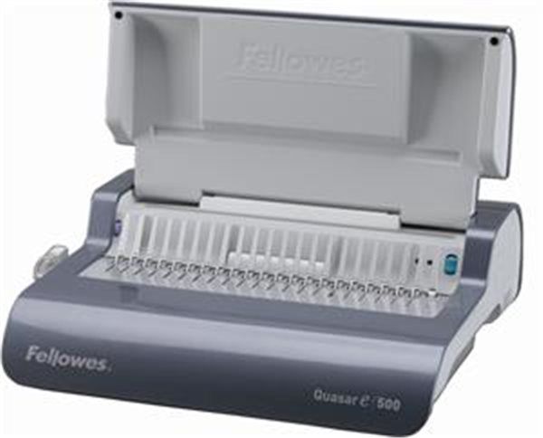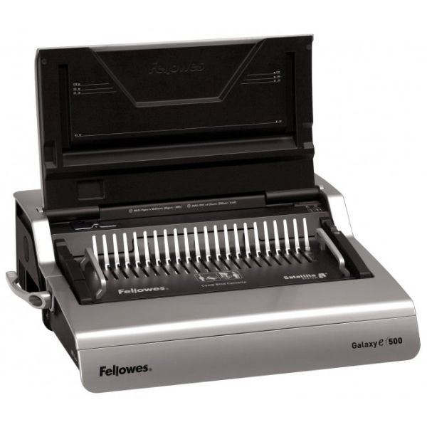 Jedinečné provedení robustního vázacího stroje s uživatelsky samostatně provozovatelnou vázací jednotkou nabízí elektrický model Fellowes Galaxy E. Děrovací kapacita až 20 listů 80g papíru. Kapacita vazby až 500 listů. Možnost nastavení vzdálenosti děr od okraje svazku. Vyřaditelné perforační nože (pro formát A5).Velký odpadní šuplík s možností uložení plastový hřbetů. Integrovaná měrka pro správnou volbu průměru hřbetu. Na čelní straně stroje je průzor pro snadnou kontrolu zaplnění odpadního prostoru.