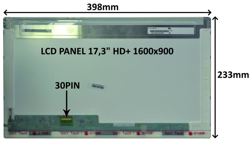 LCD PANEL 17,3" HD+ 1600x900 30PIN LESKLÝ / ŠROUBOVÁNÍ Z BOKŮ