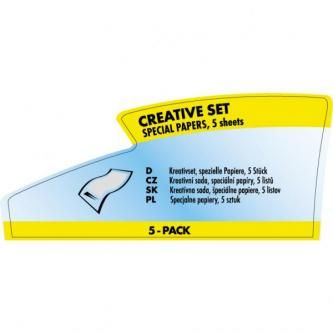 Neradi kupujete zajíce v pytli a potřebujete si vlastnosti některých papírů nejdříve vyzkoušet? Jste kreativní a nechcete si kvůli jednomu výtisku kupovat velká balení speciálních papírů? Logo kreativní sada vychází všem Vašim požadavkům vstříc - v jednom balení najdete několik druhů speciálních papírů.Sada obsahuje: