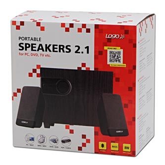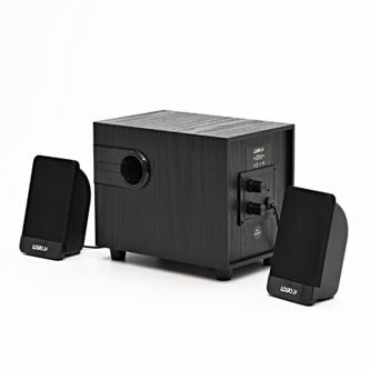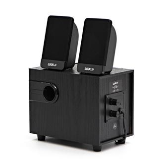 Logo reproduktory 2.1, 8W, ovládání hlasitosti, černé, dřevěné, USB+3.5mm konektor