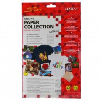 V kolekci etiket Logo najdete široký výběr rozměrů a tvarů v různých barvách, dále oblíbené kulaté CD/DVD etikety s otvorem uvnitř a také tabelační etikety určené pro jehličkové tiskárny.