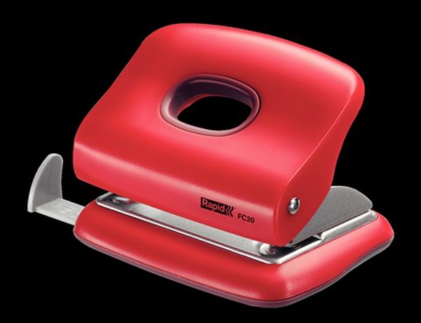 Malá děrovačka Rapid FC20Odolná kovová děrovačka s ramenem a základnou z vyztuženého plastu ABS. Pro použití doma, ve škole i v kanceláři.