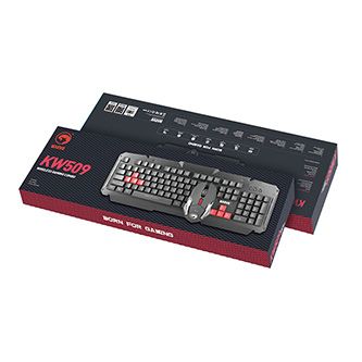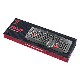 Bezdrátová herní sada Marvo KW509 s CZ/SK rozloženímBezdrátová herní sada Marvo KW509 je tvořená membránovou klávesnicí s CZ/SK rozložením kláves a optickou myší. Sada funguje na principu bezdrátové technologie 2.4 GHz a s počítačem komunikuje prostřednictvím USB 2.0 přijímače. Pracovní vzdálenost sady je do 10 metrů. Klávesnice obsahuje multimediální klávesy, které se spouští přes funkční klávesu FN. Myš má ergonomický tvar. Disponuje šesti tlačítky a rozlišení si můžete volit v úrovních 800 / 1200 / 1600 dpi.