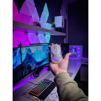 Marvo moc dobře ví, že podsvícení myši je stejně důležité jako její design. Co může být lepší než podsvícení myší? Přece to, které si můžete nastavit podle svojich potřeb nebo nálady. Z palety 16.8 milionů barev si vybere opravdu každý a díky 12 režimům podsvícení, vaše kreativita nemá hranice. Po stažení speciálního softwaru můžete nastavit barvy podsvícení, tok podsvícení i všechny makra a bindy. Pro ůsporu energie je RGB podsvícení vypnuto pokud myš používáte bezdrátově. Myš disponuje 7 tlačítky, které lze nastavit podle sebe. Macra i Bindy jsou v dnešním gamingu nutností, jelikož pomocí jediného stisku lze provést více akcí a tím být o krok napřed než váš soupeř. Průměrná reakční doba člověka na vizuální podněty je 200ms, ale pomocí bindů i maker budou vaše reakce rychlejší a přesnější.