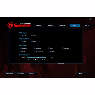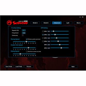Myš disponuje 6 programovatelnými tlačítky, můžete si tak nastavit přesně takovou funkci, jakou budete chtít. Pokud vám nevyhovují přednastavené úrovně rozlišení, můžete si jednoduše zvolit jiné. Nastavitelné DPI bude velkou oporou během změny herního žánru. Díky pokočilému softwaru myši, s možností přizpůsobení, si tak můžete myš nadefinovat přesně podle vašich představ.