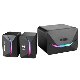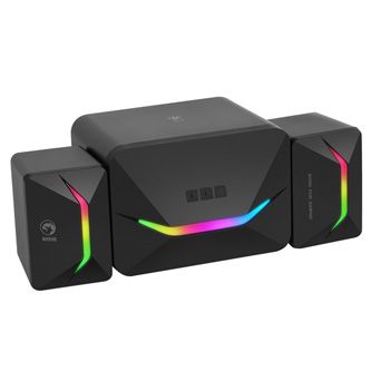 Tyto reproduktory disponují unikátním symetrickým barevným podsvícením celé reprosoustavy, jež podporuje i různé RGB efekty podsvícení. Podsvícení si můžete libovolně měnit dotykovým tlačítkem na hlavním reproduktoru. Tyto reproduktory budou skvělým designovým doplňkem do vašeho herného prostoru.