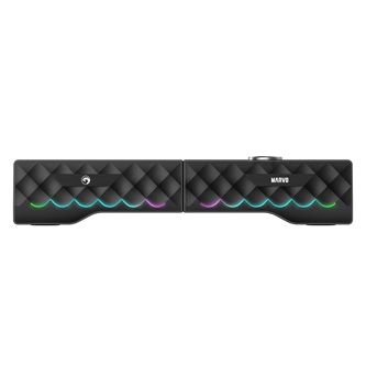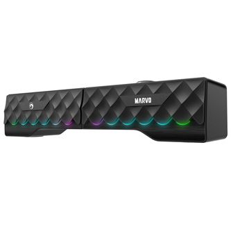 Marvo soundbar disponuje moderním RGB podsvícením, díky kterému vytvoříte ideální herní prostředí nebo s ním navodíte příjemnou atmosféru k prožitku z filmu, nebo oblíbených skladeb. Soundbar využívá bezdrátovou technologii Bluetooth. Připojit se tak můžete například ze svého chytrého telefonu, tabletu nebo jiných elektronických zařízení. Poskytuje rychlé, stabilní a nepřetržité připojení. Soundbar dosahuje výkonu 6 W.
