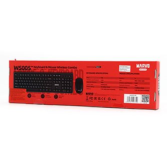 Marvo WS005 BK klávesnice US, černá s bezdrátovou myší, kancelářská, DOPRODEJ 254 Kč