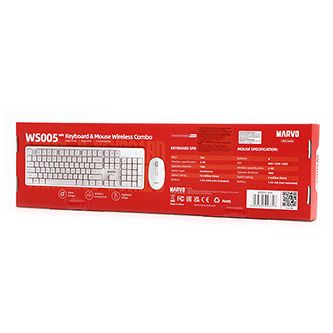 Marvo WS005 WH, klávesnice s bezdrátovou myší, US, kancelářská, bílá, DOPRODEJ