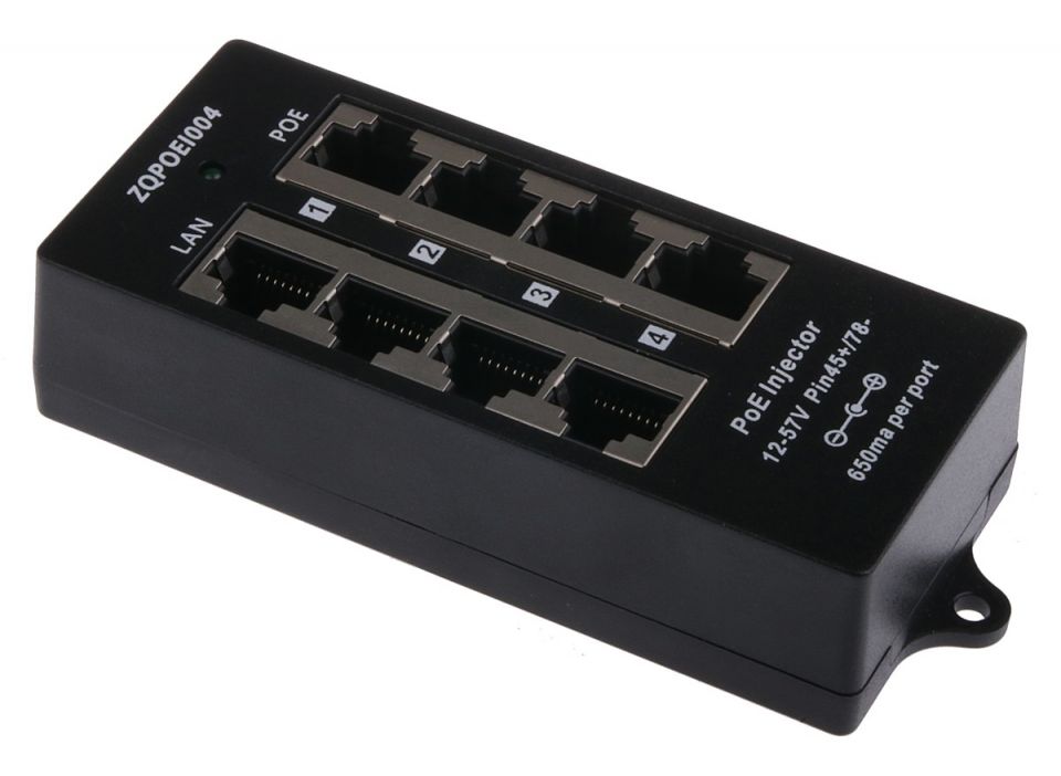 Pasivní PoE injektor lze použít v rozmezí 12 až 57V DC s max. proudem 650mA / port.