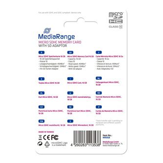 MediaRange Micro Secure Digital Card, 16GB, micro SDHC, MR958, UHS-I U1 (Class 10), s adap