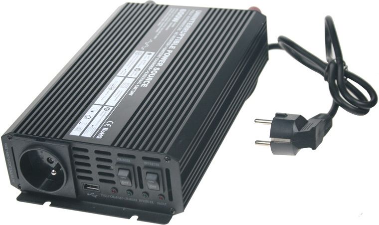 Měnič napětí Carspa UPS600-12 12V/230V 600W s nabíječkou 12V/10A a funkcí UPS