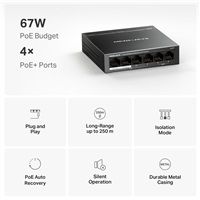 6 portů: 6× 10/100 Mbps RJ45 portů se 4 porty PoE+.