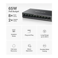 MERCUSYS switch MS110CP8portový 10/100 Mb/s + 2portový gigabitový stolní switch s 8 porty PoE+