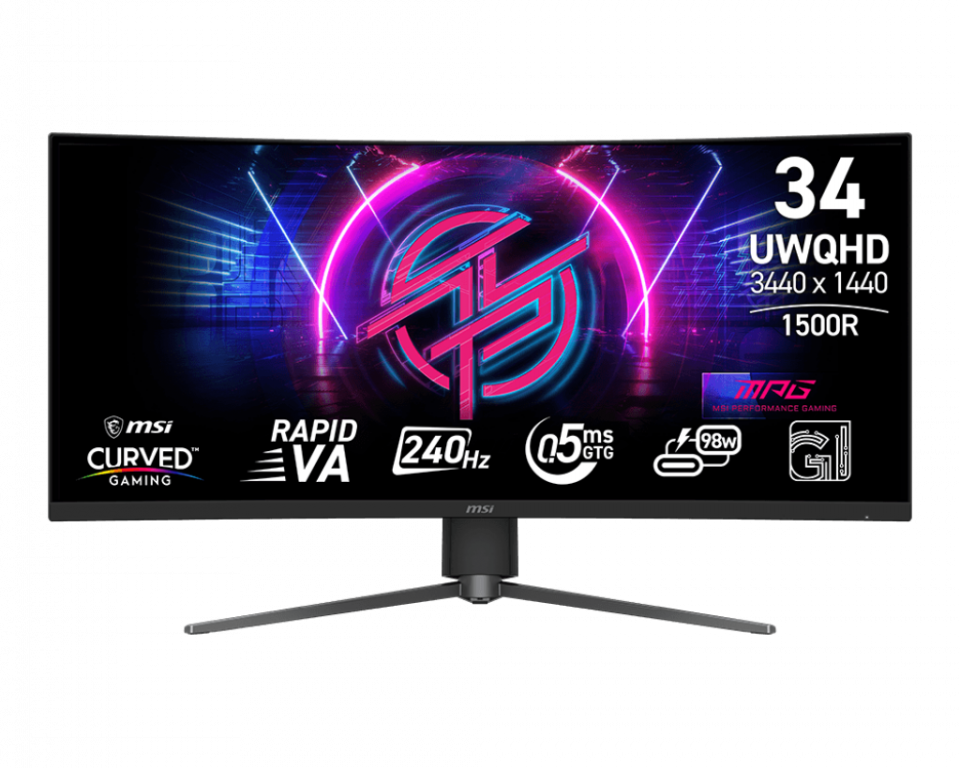 MSI Gaming monitor MPG 346CQRF X24, 34" Rapid VA zakřivený/3440x1440 (UWQHD)/240Hz/0,5ms/2xHDMI/DP/USB-A,B,C/Výšk.nastavMKT Spec MPG 346CQRF X24