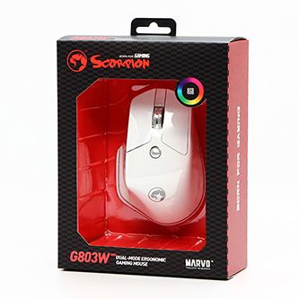 Marvo G803 s ergonomickým designem, výkonným chipsetem, dual-mode režimem připojení, nastavitelným DPI, tichými tlačítky a stylovým RGB podsvícením se stane vaším nenahraditelným pomocníkem při práci i zábavě.