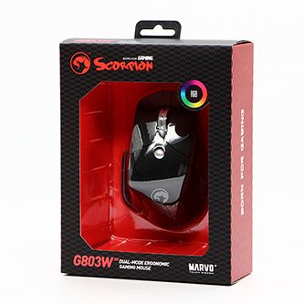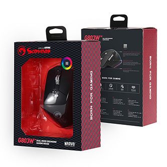 Marvo G803 s ergonomickým designem, výkonným chipsetem, dual-mode režimem připojení, nastavitelným DPI, tichými tlačítky a stylovým RGB podsvícením se stane vaším nenahraditelným pomocníkem při práci i zábavě.