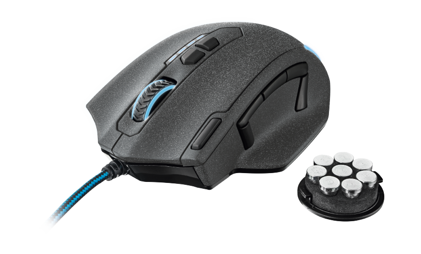 Trust GXT 155 Herní myšHerní myš GXT 155 je dokonalou herní myší: rychlý čas odezvy, extrémní přesnost, pohodlí a plně konfigurovatelné funkce podle potřeby.11 programovatelných tlačítekKromě pěti programovatelných tlačítek na palcovém panelu je myš GXT 155 vybavena 6 dalšími snadno přístupnými tlačítky. Tím je zajištěna značná výhoda v porovnání s hráči používajícími pouze klávesnici. Zatímco ostatní hráči musejí hledat tu správnou klávesu, vy můžete provádět předem naprogramované příkazy, aniž byste spustili zrak z obrazovky.DesignTato skvěle navržená herní myš se vyznačuje ergonomickým designem s praktickým umístěním tlačítek a zdrsněným povrchem po stranách, za nějž můžete myš s jistotou perfektně uchopit během hraní. Opletený nylonový kabel 1,9 m snadno klouže po stole a odolá náročnému používání. Hmotnost lze nastavit pomocí 8 kovových závaží, každé o hmotnosti 2 g.Pokročilý herní softwarePomocí dodávaného nového softwaru lze myš GXT 155 přizpůsobit podle potřeby. Můžete uložit až pět různých profilů s veškerým osobním nastavením. Pomocí nového herního softwaru lze nastavit rozlišení DPI (až 4000), skenovací frekvenci, komunikační frekvenci za sekundu, barvu LED, funkci dvojitého kliknutí a rychlost rolování podle potřeby. Tato nastavení lze zkombinovat do jediného profilu. Protože jsou herní profily uloženy v myši, není nutné profily opětovně nastavovat při připojení myši GXT 155 k jinému počítačiZákladní vlastnostiPokročilý software pro programování tlačítek a maker5 dodatečných palcových tlačítek, skvělé pro hráče strategických multiplayerových her MOBA