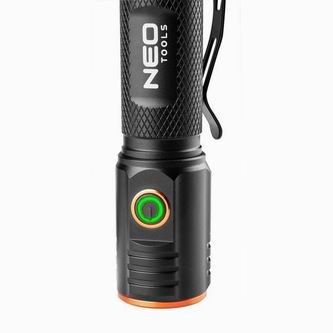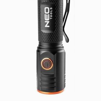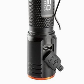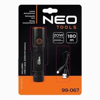 Odolná a víceúčelová nabíjecí svítilna značky NEO, vyznačující se výkonem 2000 lumenů a 20 W. Vybavena CHN LED diodou má dosah osvětlení až 180 metrů. Svítilna je napájena portem USB C. Vestavěná lithium-iontová baterie 3,7 V 2200 mAh potřebuje k plnému nabití 4 hodiny a je schopna pracovat 4 hodiny. Zařízení má praktický indikátor nabití baterie, který výrazně pomáhá při plánování výletů či výletů.
