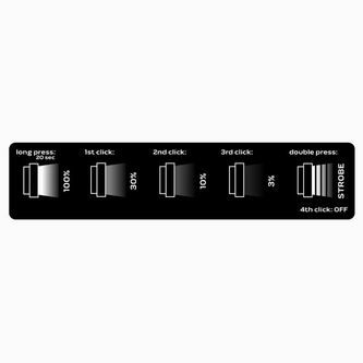 - 5 provozních funkcí (100% výkon - až 20 sekund, 30% výkon, 10% výkon, 3% výkon, stroboskop),