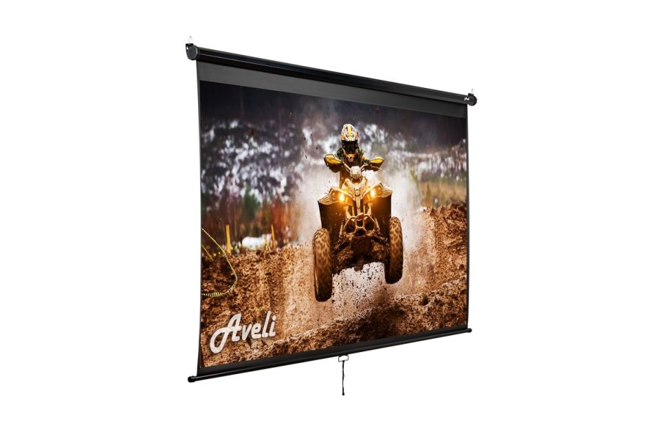 Nástěnné projekční plátno AVELI, 204x115cm (16:9) 92", černý tubus 2 267 Kč