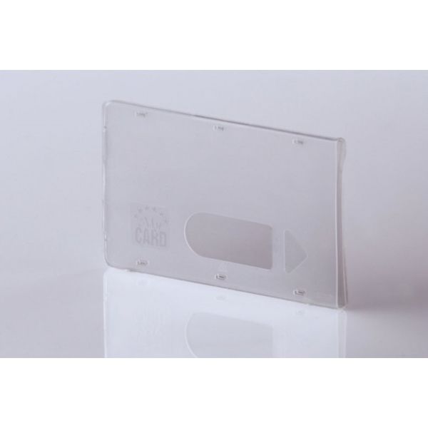 Tuhý plastový obal pro magnetické karty 54 x 86 mm – vodorovný, provedení z průhledného polomatného polyprophylenu. Výhodou obalu je výsek pro snadné čtení kódu. Má zaoblené hrany. Otvor pro snadné vysunutí karty po celé straně. Obal chrání karty nejen proti mechanickému poškození, ale i vlivům UV záření, antistatické elektřiny a v omezené míře i magnetismu. Vnější velikost: výška 56 mm x šířka 89 mm x hloubka 2 mm.Specifikace: