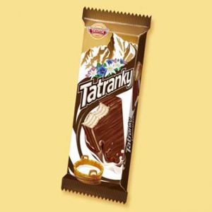 Tatranka celomáčená mléčnáCelomáčená oplatka v mléčné polevě s mléčnou náplní.