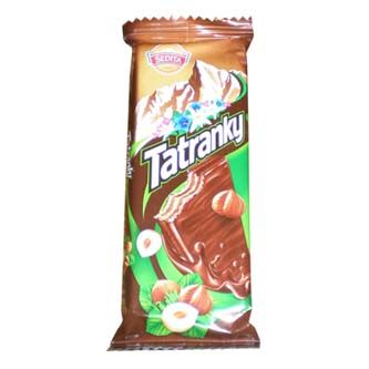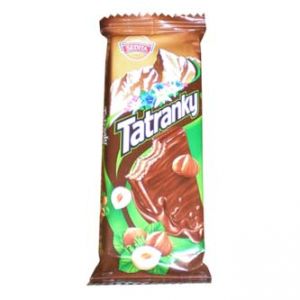 Tatranka celomáčená oříškováCelomáčená oplatka v mléčné polevě s lískooříškovou náplní.