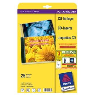 Papírový přebal na CD Avery, bílý, 25xA4, 151x118mm, 2ks na A4pro inkoustové tiskárny