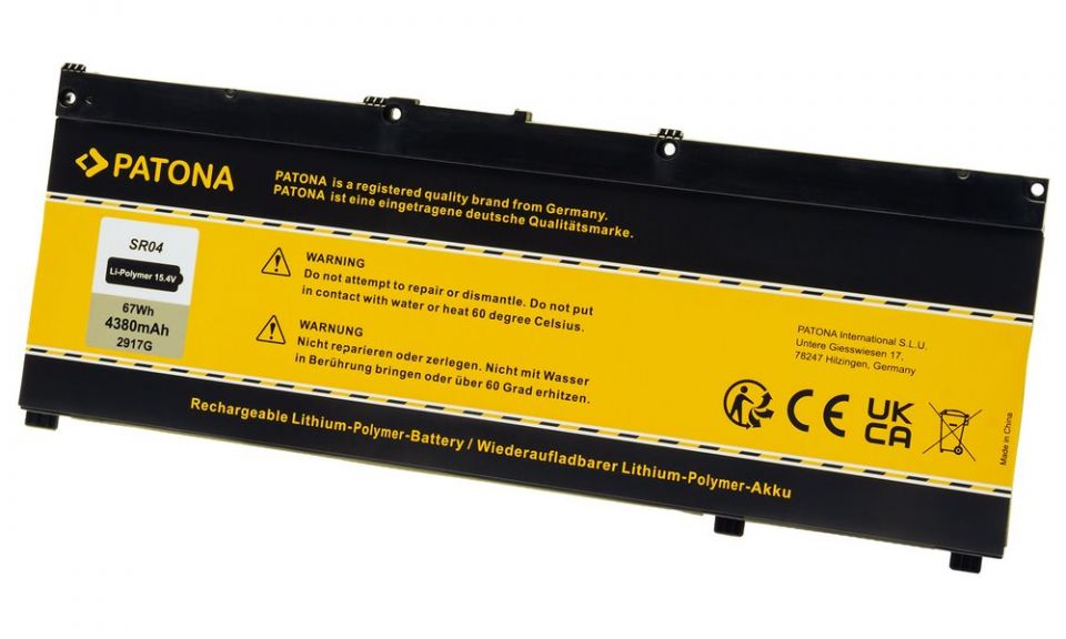 PATONA pro HP Omen 15-ce/dc/cb a HP Pavilion 15cx 4380 mAhBaterie vyznačující se vysokou kvalitou. Disponuje integrovanou ochranou proti přetížení a přebití. Je osazena vysoce kvalitními články a je 100% identická s originální baterií. Všechny baterie Patona jsou vyráběny podle nejvyšších evropských standardů kvality.