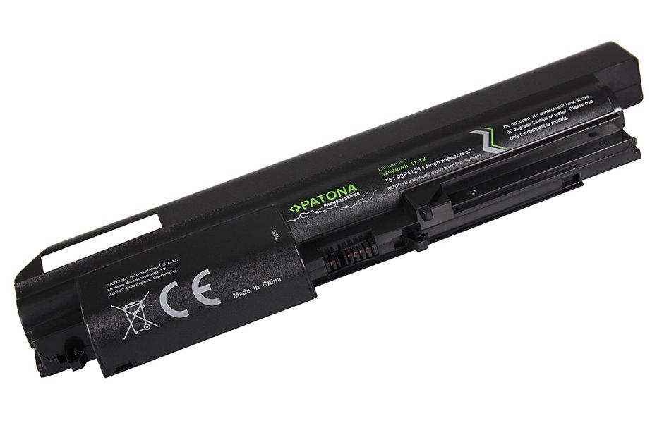 PATONA pro Lenovo R61/T61 5200 mAhBaterie vyznačující se vysokou kvalitou. Disponuje integrovanou ochranou proti přetížení a přebití. Je osazena vysoce kvalitními články a je 100% identická s originální baterií. Všechny baterie Patona jsou vyráběny podle nejvyšších evropských standardů kvality.