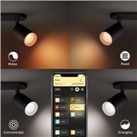 Ovládejte aplikací Bluetooth až 10 světelAplikace Hue Bluetooth vám umožňuje ovládat chytré osvětlení Hue v jedné místnosti u vás doma. Můžete přidat až deset chytrých světel a ovládat je jednoduchým stisknutím tlačítka na vašem mobilním zařízení.Ovládejte světla hlasem*Philips Hue funguje s hlasovými asistenty Amazon Alexa či Google Assistant po spárování se zařízeními Google Nest nebo Amazon Echo. Pomocí jednoduchých hlasových příkazů můžete ovládat několik světel, ale i třeba jediné svítidlo v mísnosti.Vytvořte si zážitky šité na míru s barevným chytrým světlemProměňte svůj domov s více než 16 miliony barev a ihned vytvořte správnou atmosféru pro každou událost. Jediným stisknutím tlačítka můžete nastavit slavnostní náladu na večírek, proměnit váš obývací pokoj v kino, vylepšit váš domov s barevnými akcenty a mnohem více.Navoďte si správnou atmosféru teplým až studeným bílým světlemTyto žárovky a svítidla vám nabízí bílé světlo v širokém spektru odstínů, od teplé až po studenou. Protože jsou úplně stmívatelné (od jasného světla až po slabé noční osvětlení), můžete světla vyladit na odstín a jas, který bude ideálně vyhovovat vašim každodenním potřebám.Získejte ideální světelná schémata pro vaše každodenní činnostiUsnadněte si a zpříjemněte den předvolenými světelnými schématy speciálně vytvořenými pro vaše každodenní činnosti: Povzbuzující, Soustředění, Čtení a Relaxační. Dvě scény ve studených tónech, Povzbuzující a Soustředění, vám pomohou zahájit den a soustředit se, scény s teplejším světlem, Čtení a Relaxační, pak využijete, když si budete chtít pohodlně číst nebo nechat svou mysl odpočinout.Technické specifikaceBarva: černáMateriál: kovSpeciálně navrženo pro: Obývací pokoj a ložnice, KuchyněStyl: NadčasovýTyp: Bodové svítidloEyeComfort: NeVýška: 16,3 cmDélka: 8,2 cmČistá hmotnost: 0,280 kgŠířka: 8,2 cmŽivotnost až: 15 000 hNapájení ze sítě: 50–60 HzZtlumitelné svítidlo: AnoLED: AnoZabudovaný LED zdroj: NePočet žárovek: 1Patice/objímka: GU10Příkon žárovky: 5.7 WMaximální příkon náhradní žárovky: 6 WKód IP: IP20Třída ochrany: I – uzemněníSvětelný tok při 2700 K (výchozí nastavení z výroby): 230 lmSvětelný tok při 4000 K: 350 lmMožnost výměny světelného zdroje: Světelný zdroj LED vyměnitelný koncovým uživatelemDotaz na produkt