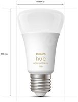 Ovládejte aplikací Bluetooth až 10 světelAplikace Hue Bluetooth vám umožňuje ovládat chytré osvětlení Hue v jedné místnosti u vás doma. Můžete přidat až deset chytrých světel a ovládat je jednoduchým stisknutím tlačítka na vašem mobilním zařízení.Ovládejte světla hlasemPhilips Hue funguje s hlasovými asistenty Amazon Alexa či Google Assistant po spárování se zařízeními Google Nest nebo Amazon Echo. Pomocí jednoduchých hlasových příkazů můžete ovládat několik světel, ale i třeba jediné svítidlo v mísnosti.Navoďte si správnou atmosféru teplým až studeným bílým světlemTyto žárovky a svítidla vám nabízí bílé světlo v širokém spektru odstínů, od teplé až po studenou. Protože jsou úplně stmívatelné (od jasného světla až po slabé noční osvětlení), můžete světla vyladit na odstín a jas, který bude ideálně vyhovovat vašim každodenním potřebám.Získejte ideální světelná schémata pro vaše každodenní činnostiUsnadněte si a zpříjemněte den předvolenými světelnými schématy speciálně vytvořenými pro vaše každodenní činnosti: Povzbuzující, Soustředění, Čtení a Relaxační. Dvě scény ve studených tónech, Povzbuzující a Soustředění, vám pomohou zahájit den a soustředit se, scény s teplejším světlem, Čtení a Relaxační, pak využijete, když si budete chtít pohodlně číst nebo nechat svou mysl odpočinout.Technické specifikaceRozměry (Š×V×H): 60x110Ochrana životního prostředíProvozní vlhkost: 5% Provozní teplota: -20 až 45 °CObsahuje funkce/příslušenství navícMožnost ztlumení pomocí vypínače Hue Switch a aplikace Hue: AnoZáruka2 roky: AnoSpotřeba elektrické energieTřída energetické účinnosti (EEL): FServisZáruka: 2 rokyTechnické údajeHmotnost: 72 gTechnologie žárovky: LEDSvětelný tok při 2700 K (výchozí nastavení z výroby): 806 lmSvětelný tok při 4000 K: 1 100 lmŽárovkaTeplota chromatičnosti: 2200K-6500KPrůměr: 60 mmEnergetický štítek (ACC (EU) 874/2012; A++ – E): GPatice: E27Tvar produktu: A60Výška: 110 mmVstupní napětí: 220V-240VŽivotnost: 25 000 hSvětelný výkon: Od hřejivě bílého po chladné denní světloSvětelný tok: 1100 lmMax. provozní výkon: 8 WMax. výkon v pohotovostním režimu: 0.5 WPočet cyklů zapnutí: 50 000Účiník: >0.5Jmenovitá životnost: 25 000 hUpgradovatelný softwarepři připojení k aplikaci Bluetooth App nebo Hue BridgeSpuštěníOkamžitý 100% světelný výkonPříkon: 8 WKomunikační protokolBluetooth a ZigbeeHluboce stmívatelné: AnoUpgradovatelný softwarePři připojení k aplikaci Bluetooth nebo zařízení Hue BridgeObsah baleníŽárovky systému Hue: 2Podporované systémykompatibilní s technologií HomeKitYesIOSYesAplikace Philips HueiOS 13 a novější Android 8.0 a novějšíHlasoví asistentiAmazon AlexaAplikace Philips Hue BluetoothAndroid 7.0 a vyšší IOS 11 a vyššíRozměry a hmotnost baleníEAN/UPC – výrobek: 8719514291256Čistá hmotnost: 0,187 kgHrubá hmotnost: 0,270 kgVýška: 17,400 cmDélka: 7,200 cmŠířka: 14,600 cmČíslo materiálu (12NC): 929002468404Dotaz na produkt