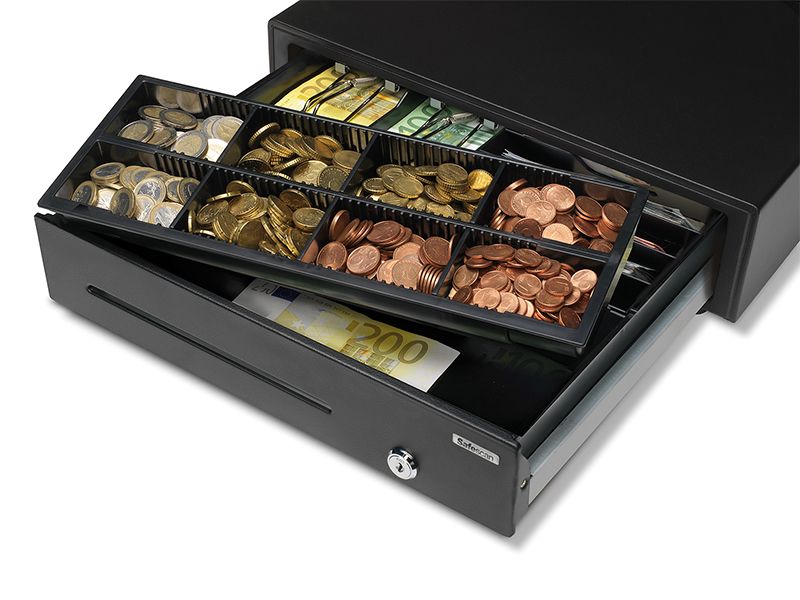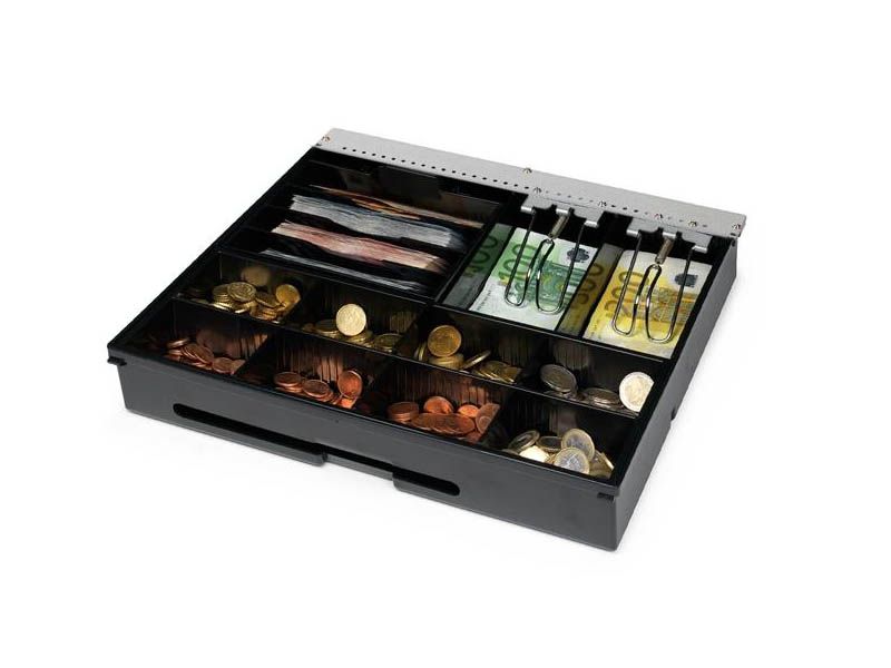 - Vyjímatelný mincovník s 8 nastavitelnými přihrádkami na mince a 6 přihrádkami na bankovky