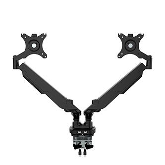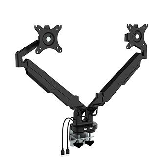 Polohovatelný držák pro 2 monitory, 2-9KG, svorka a průchodka stolu, 17"-32", USB HUB