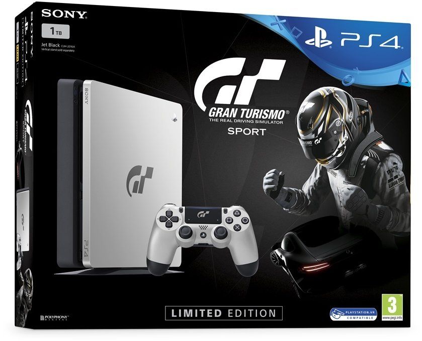Obsah balení: Herní konzole PS4 s 1TB HDD se hrou Gran Turismo Sport a 14-denním členstvím PS Plus v balení.
