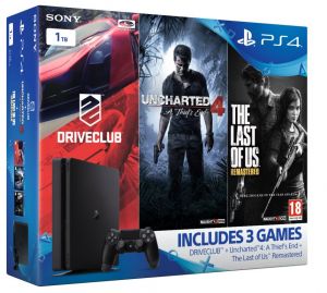 PS4 - Playstation 4 1TB Slim - GAMER Pack - 3 hry: (Uncharted 4, DriveClub, The Last of Us