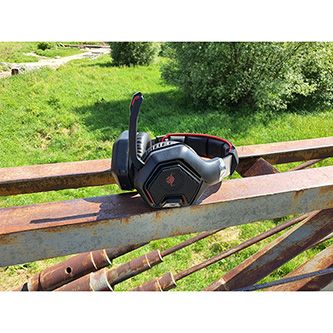 Vše podstatné pro ovládání sluchátek se nachází na náušnících: tlačítko pro zapnutí / vypnutí sluchátek, ovládání hlasitosti, pauza, tlačítko pro zapnutí / vypnutí mikrofonu. Na náušnících najdete také audio vstup pro připojení sluchátek kabelem a micro USB nabíjecí port. Červeně podsvícené logo slouží zároveň jako indikátor zapnutí a indikátor nabíjení.
