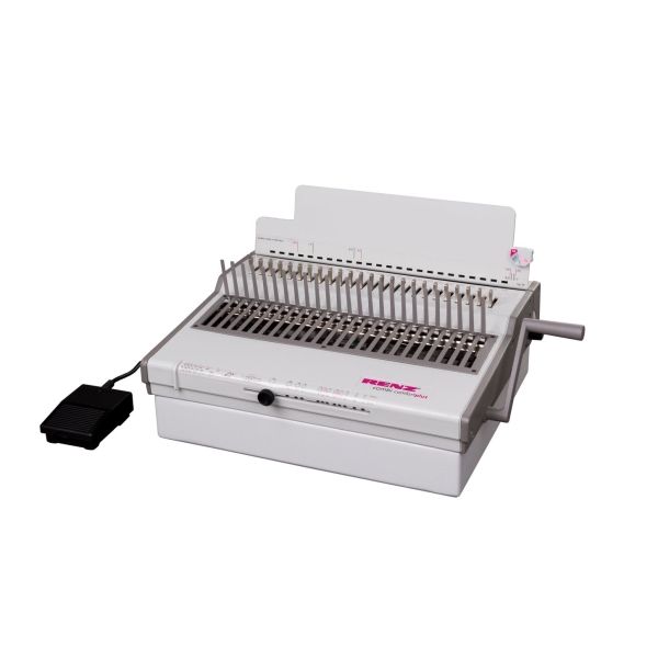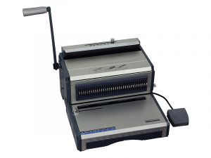 Spolehlivý, robustní a pro obsluhu velice komfortní vázací stroj s elektrickým pohonem děrovacího nástroje. Určen pro vazbu do plastových hřbetů. Je vhodný pro intenzivní využití na týmovém pracovišti nebo i při poskytování služeb. Celokovová konstrukce. - elektrické děrování na jeden cyklus do 25 listů 80g papíru - vazba do průměru hřbetu až 51 mm tj. 500 listů - nastavitelná vzdálenost děr od okraje listu - vyřaditelné všechny nože - vkládání listů shora do děrovacího prostoru (pro kvalitní setření svazku a bezchybné děrování) - rychlost děrovacího cyklu 1,2 sec. - příkon motoru: 180 W - napájení 230 V / 50 Hz - made in GermanySpecifikace: