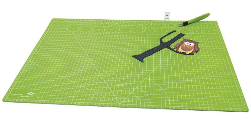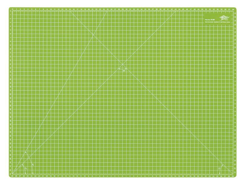 - Robustní řezací podložka je potištěna na obou stranách mřížkou s různými úhly a kruhy.