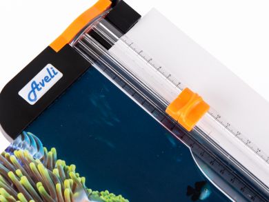 Kotoučová řezačka AVELI DISC 300 je vyrobena z černého matného plastu s řezným kotoučem z kvalitní nerezové oceli. Spolehlivě ořízne papír, fotografie, vizitky i různé dokumenty. Základnu tvoří potisk s měřítky a úhly. U řezačky AVELI DISC 300 se můžete spolehnout na pohodlné a přesné řezání.